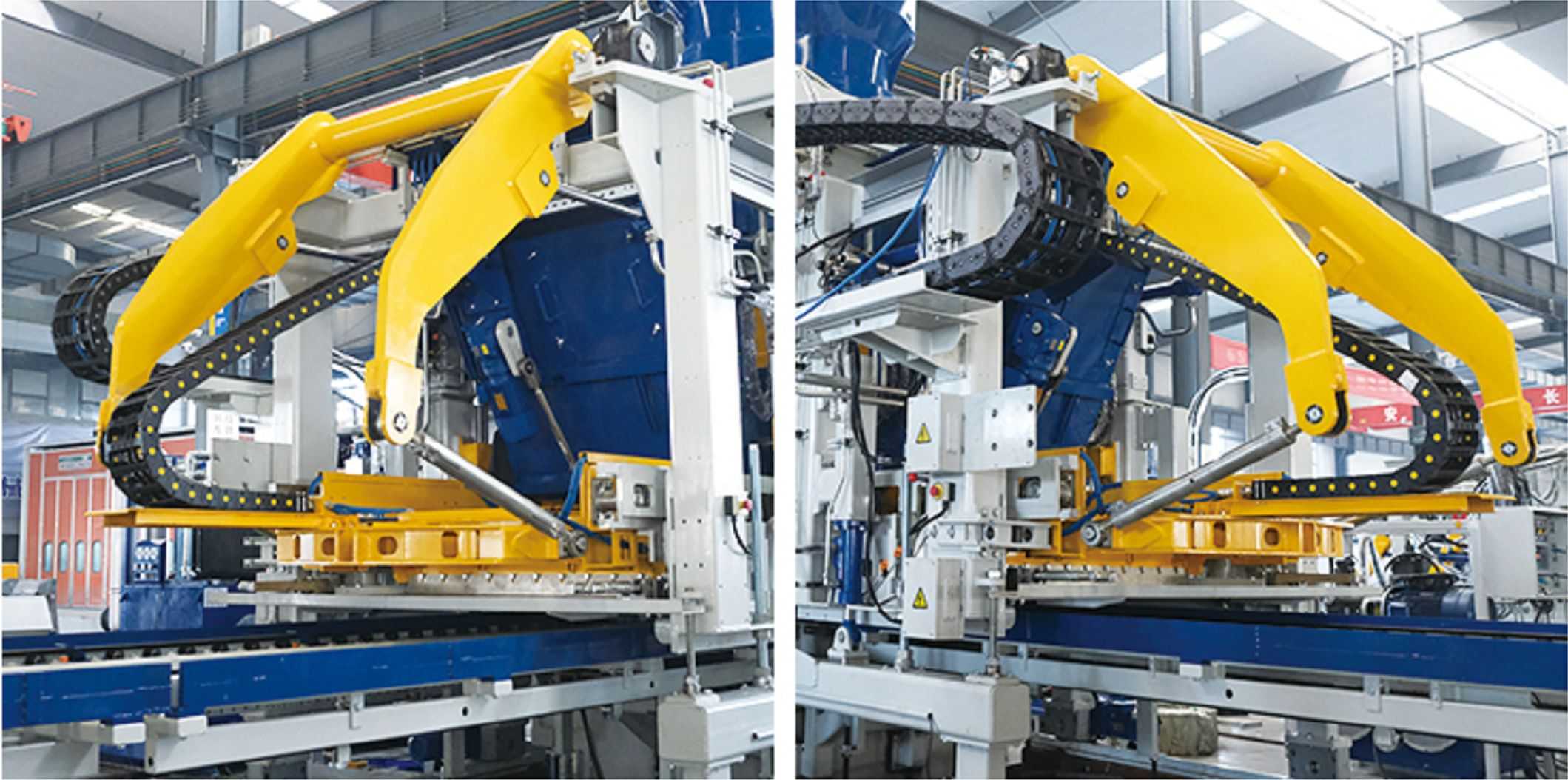 Útbúinn með afkastamiklu vökvakerfi, keyrir aðalvélin hratt og vel og aðalþrýstingurinn samþykkir stóran stimpilhólk með þvermál strokksins φ600/800MM, sem getur gefið út 900/1500 tonn af þrýstingi, sem hjálpar til við að bæta vöruþéttleikann betur og hefur sterkari aðlögunarhæfni. Vökvadælan og vökvaventillinn samþykkja alþjóðleg vörumerki og hraði, þrýstingur og högg vökvaaðgerða eru stillt í samræmi við mismunandi vörur, sem er stöðugt, skilvirkt og orkusparandi.